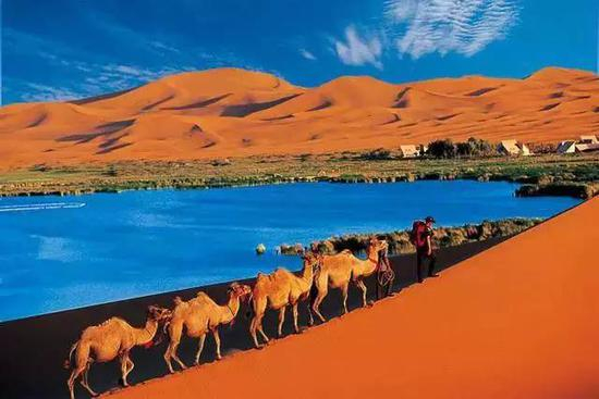 位于内蒙古自治区阿拉善左旗西南部和甘肃省中部边境,中国第四大沙漠。腾格里蒙古语为天,意为茫茫流沙如渺无边际的天空,故而得名。沙漠内部,沙丘、湖盆、盐沼、草滩、山地及平原交错分布。腾格里沙漠中还分布着数百个存留数千万年的原生态湖泊。