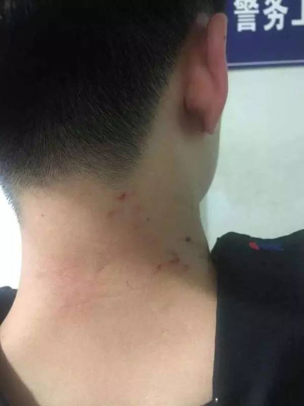 看见男安检员倒在地上,这名女子情绪激动,对着男安检员身上一通打,连挠带抓,男安检员脖子、胳膊上马上出现一道道伤痕。