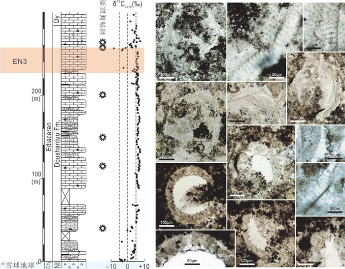 华南的埃迪卡拉系陡山沱组保存了连续完整的埃迪卡拉纪早–中期地质记录,产出大量的大型带刺疑源类化石,是全球埃迪卡拉纪古生物与地层学研究的热点。过去对陡山沱组大型带刺疑源类的研究主要集中于台内盆地环境下的宜昌三峡地区和台地边缘的贵州瓮安地区,已经发表的资料显示这些大型带刺疑源类在一次全球性碳同位素负漂移事件(EN3)之前消失,这一特征与世界其他地区一致,因而EN3所代表的古环境变化长期被认为是大型带刺疑源类灭绝的可能原因之一。然而,来自世界其他地区的一些最新研究暗示了不同的可能性。