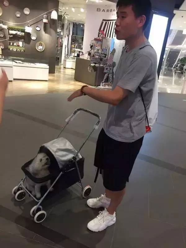 并且商场还向没有宠物推车的顾客提供