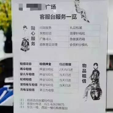 但客服台上放置的服务一览板上