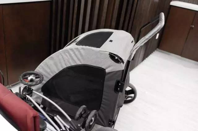 放置宠物的黑色手推车的框比租借的婴儿车小一圈,拉下网罩扣住框的边缘,小宠物们就有了自己相对密闭的“小世界”。