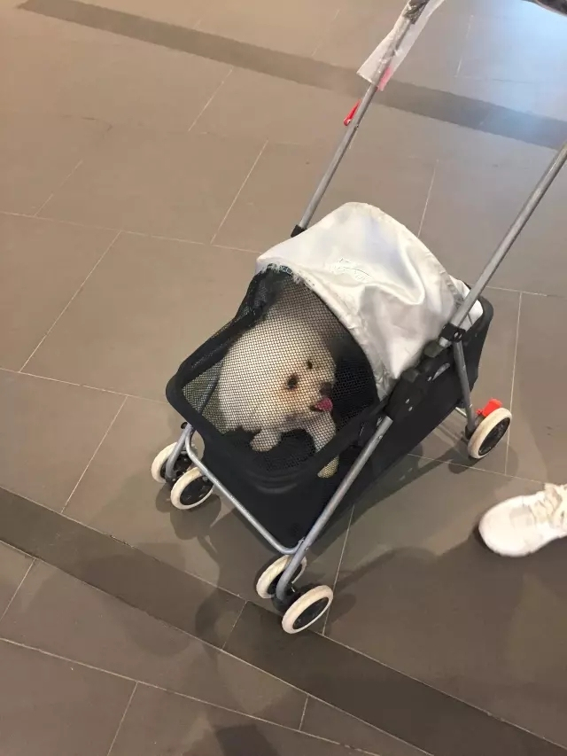 我家泰迪在小区里逛就很开心,撒开丫子就跑。商场的小推车空间太小了,让它闷在里面估计还不乐意。