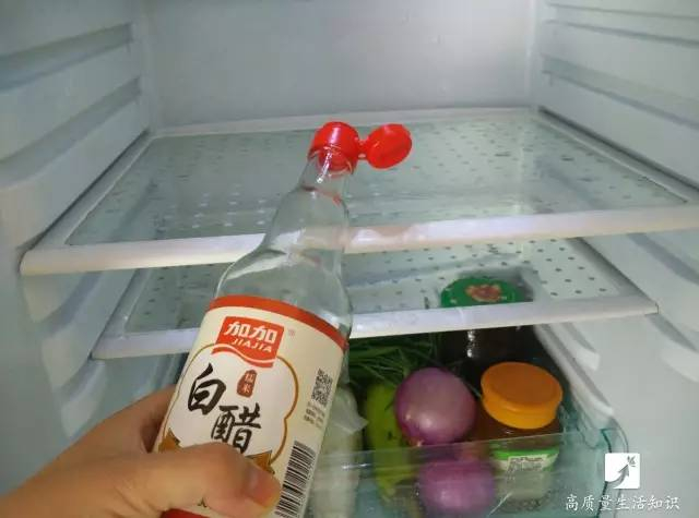 往搁板上倒入少许白醋