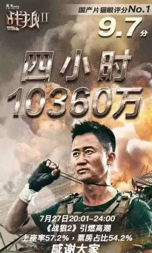 市场太需要这样一部电影了。“热血硬汉+家国情怀”这样的组合,不仅属于美国好莱坞大片,也属于中国制造!34亿的高票房也证明了观众对中式热血的支持:这个,可以有!