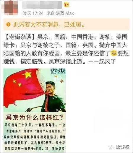 不实消息传出不久后,吴京妻子谢楠的母亲亲自晒出两人的护照以及孩子的出生证,例证吴京一家三口都是中国籍。