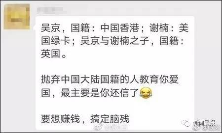 然而,人红是非多,有多名微博网友称,吴京一家均非中国大陆籍,并借此嘲讽道“抛弃中国大陆籍的人教育你爱国,你还信了?”
