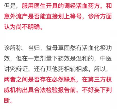 “我们是纯中医,号脉一般是妊娠后3个月才能把出,早孕诊断最准确的是B超,因为当时她提出来上环了,医生没有想到怀孕,我们一直是认可的,医生没有建议验孕,有这方面的缺失。”