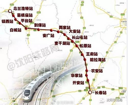 起自吉林省长春市,途经农安县、松原市、大安市、白城市,止于内蒙古自治区乌兰浩特市,全长412公里,设车站25座,其中客运业务办理站17座,运营时速160公里。