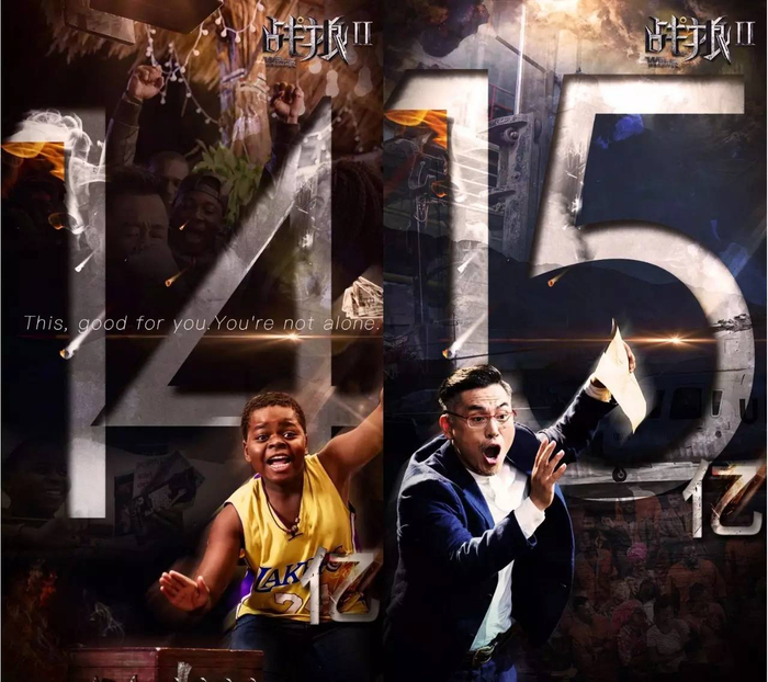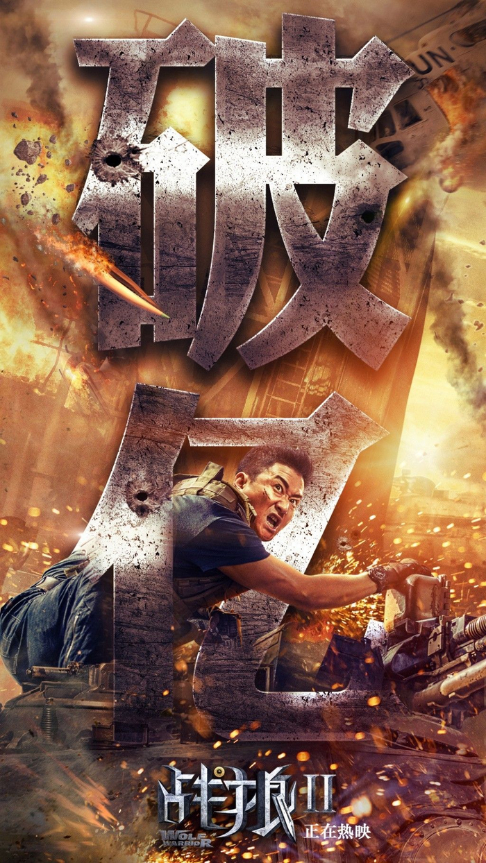 然而,看看《战狼2》自己的海报,这高饱和度的渐变底色、纯色镂空的数字、PS入门级别的人物抠图,不加任何特效,作为一个审美路人,都已经感觉到设计师的自暴自弃😂
