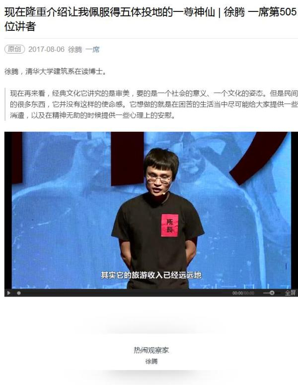 8月6日,一篇题为《现在隆重介绍让我佩服得五体投地的一尊神仙》的文章在许多人的微信朋友圈突然火了起来。这篇文章是清华大学建筑系在读博士生徐腾在演讲平台“一席”的演讲稿,从河北易县的一座“他奶奶的庙”谈起,讲述了民间信仰下的许多独特建筑。