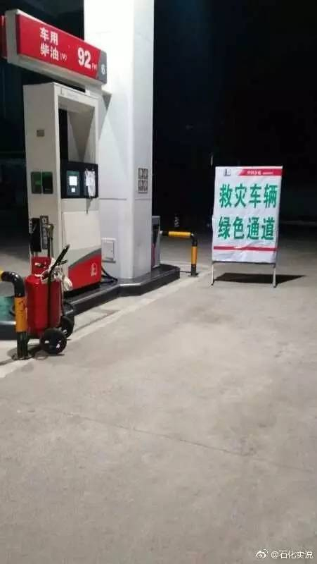 而前往九寨沟沿线的所有中国石化加油站已全部开通救灾绿色通道,时刻为救援车辆加油。