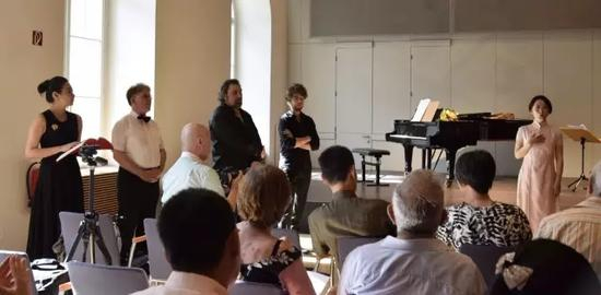 然而,让素来接受正统西洋室内乐训练的音乐家们,理解中国古典戏曲和其背后中国传统的美学文化,却并非易事。“我天天给大提琴唱旋律,周老师天天给钢琴唱过门……”,“为了让英法俄的音乐家们更好地领悟中国五声调式,我们天天给他们唱二人转、民歌、讲《红楼梦》,语言不通,连比划带猜,就差示范中国古代年轻男女如何传情达意了……”谈起排练时不同文化间的对话和碰撞,林莫樵也不禁莞尔。