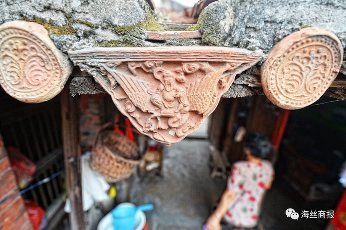 沿街民宅房檐上的瓦挡,出自明代,几百年前的手艺,在顶街随处可见。