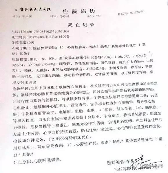 8月7日,记者联系到女孩的父亲银先生。银先生称,8月2日晚8时许,女孩和母亲一同在邵阳县振羽广场的喷泉处玩,事发时孩子母亲未留意到。女孩倒地后被发现,随后送往医院,但在21时因抢救无效而死亡。银先生告诉记者,有目击者称,女孩在喷泉停下的时候往下看喷水孔,随后喷泉再次喷水时女孩倒地。