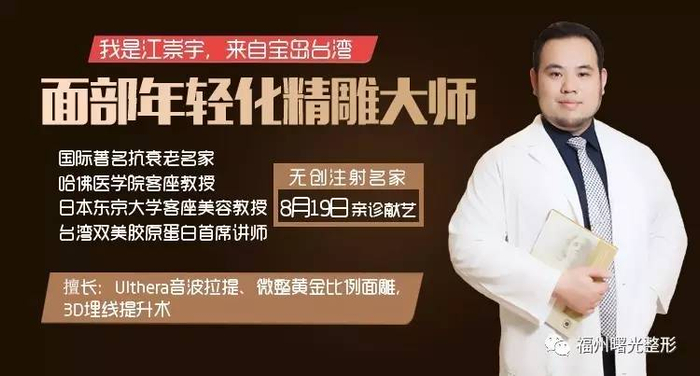 江崇宇 有多年医疗美容主诊经验;对皮肤綜合管理治疗与设计(从基础水光到联合药品治疗的实际应用与设计方案)、全面部微整形治疗和联合设计,有独到系統性见解和临床治疗经验。台北医科大学外科教授,台北医科大学外科教授,被誉为台湾抗衰老第一人。