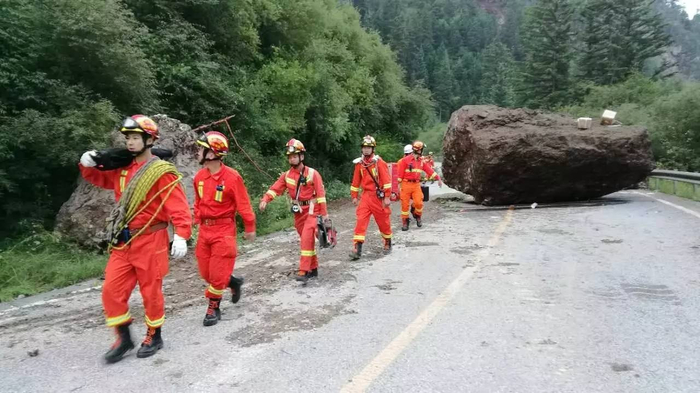 2、从川主寺到九寨一线因山体滑坡巨石导到多处道路中断;
