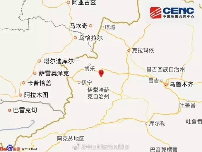 据了解,乌鲁木齐、克拉玛依、伊犁、塔城、博乐等多有震感。