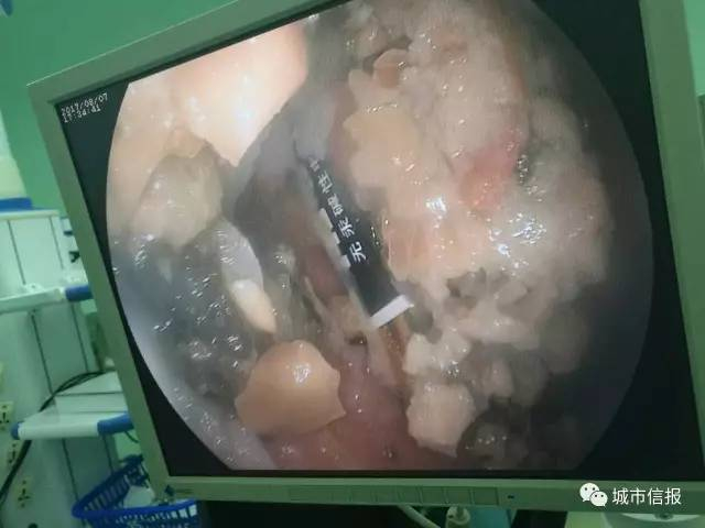 当天下午5点半,手术正式开始。当胃镜进入食管,专家愣住了:“里面塞满了包子陷、西红柿、水果等残渣。”