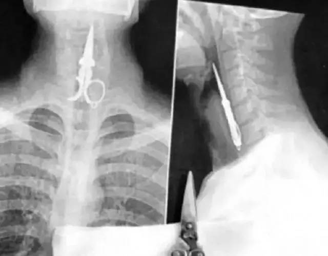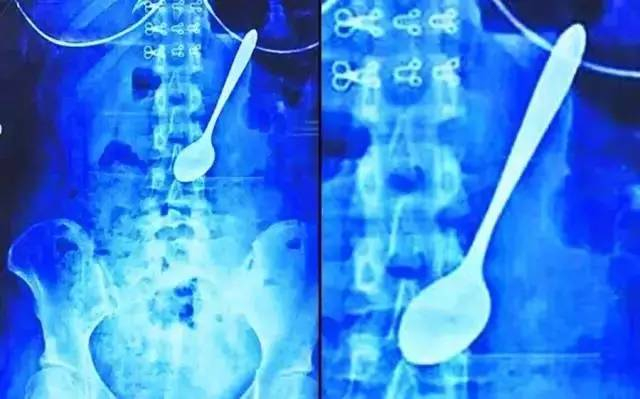 不光孩子会误吞,大人有时候也很马虎。驻马店上蔡县一位二十多岁的小伙, 吃晚饭时因为太饿,狼吞虎咽,误把刀片当肉片吞了下去,刀片一路穿膛入肚……