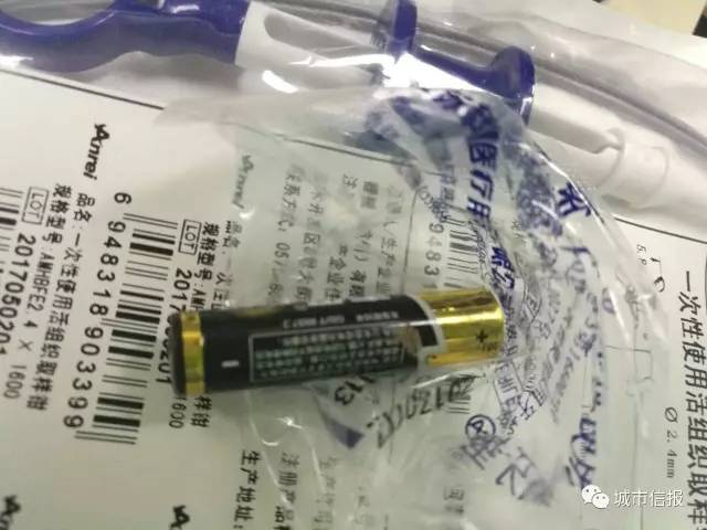 无奈之下,医生只能慢慢寻找,15分钟后,终于在油腻的食物残渣下面找到了隐藏的7号碱性电池。