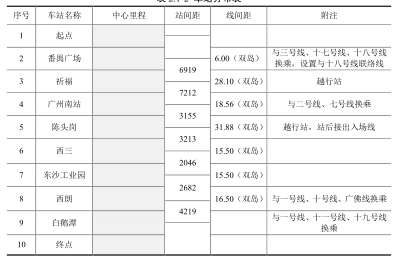 本线采用8辆编组市域快线列车,AC25kV 架空接触网供电,列车最高运行速度160km/h。以实现南沙、番禺、荔湾与广州南站的快速轨道交通联系。
