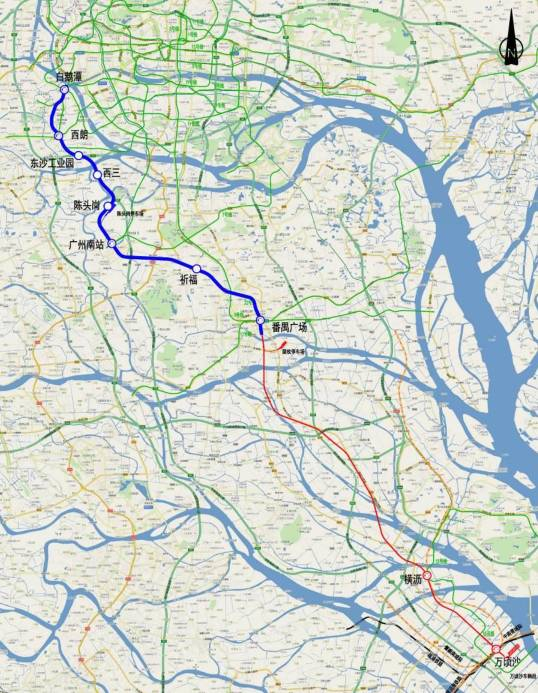 虽然土建工程起点为番禺广场,实际上线路在番禺广场以南与18号线共线运营,意味着从万顷沙开车,四站到达广州南站。