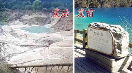 震前与震后九寨沟对比图