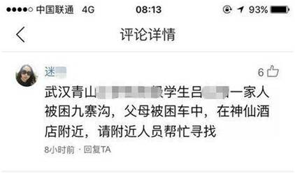 四川九寨沟发生地震时,一对来自湖北武汉的夫妇正带着孩子,一家四口自驾游。