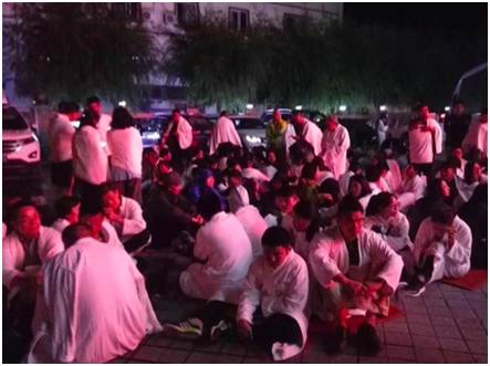 8月9日上午9点半,在九寨沟县人民医院,三名志愿者靠在一起睡着了,她们是母女三人,妈妈叫杨明珍,两个女儿分别是袁菁、袁榕。