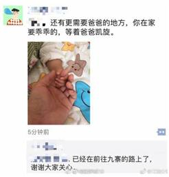 他在朋友圈中发道:宝宝,你要乖,还有更需要爸爸的地方。你在家乖乖的,等着爸爸凯旋!