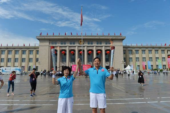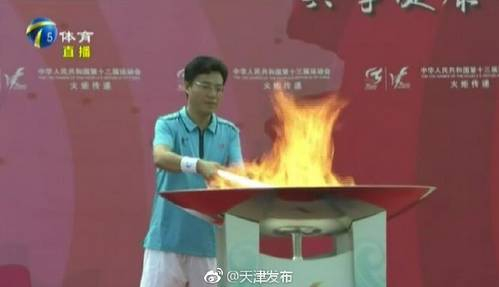 第一棒火炬手:天津市体工大队副大队长、天津女排主教练王宝泉!在担任天津女排主教练期间,他率队10次获得全国女排联赛冠军,三次全国运动会女排冠军,多次获得全国大奖赛、锦标赛冠军,四次获得亚洲俱乐部杯赛冠军。