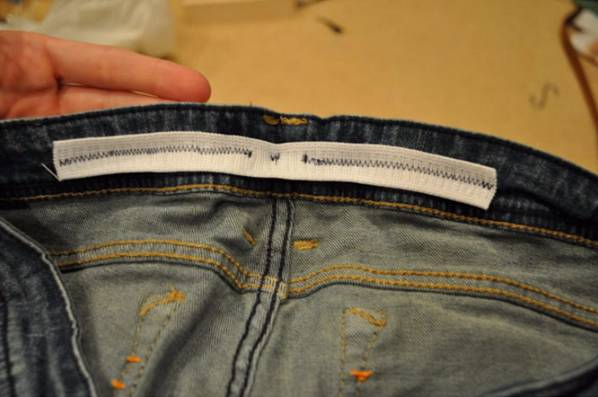 找一截松紧带,沿着边沿缝上,然后就能轻轻松松穿上了。