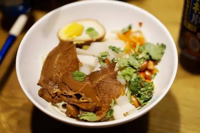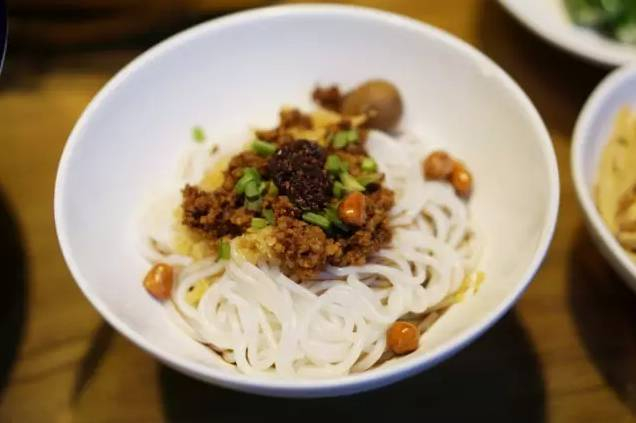 主食的选择也有很多,来一份客串拌粉,上边洒满花生米菜脯粒,很是开胃。一拌开,底下还有浓浓汤汁。米粉Q弹可口辅料丰富,香气扑鼻的拌粉一碗下肚,整个胃都熨帖了。