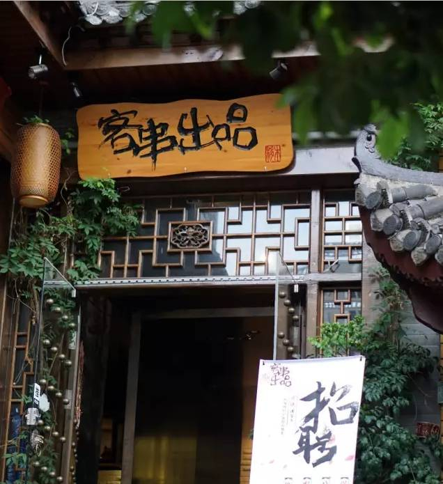 这家位于都正街清香亭旁的烧烤店,带着古香古色的古典气质,绿植掩映处,墙瓦飞檐、雕花窗棂、铜钉门龙头环,复古的竹灯笼高高挂起,木凳方桌与柔亮的灯光搭配的正好,完全颠覆了我们对传统烧烤店的印象,原来撸串也可以如此有格调。