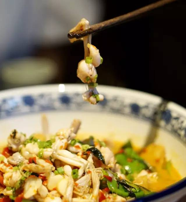 口味田鸡和墨鱼仔有着异曲同工之妙,在由衡阳的黄辣椒,长沙的圆辣椒以及岳阳的小米椒制作的香辣浓汤浸润下,田鸡早已鲜香入味,软嫩细腻的口感和辣汤一起在嘴里交融,绝对过足辣瘾。