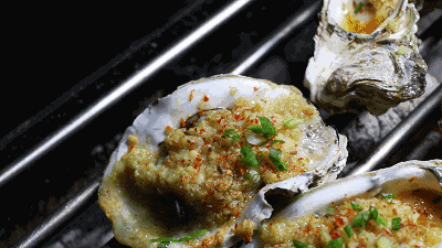 吃烧烤怎么只能吃肉呢?肉质肥嫩的生蚝在炭火上慢慢烘烤,滋滋冒油,格外诱人。