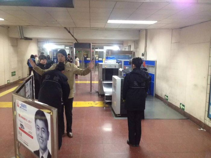 在人检方面,乘客进站时通过安检门对其进行安全检查,包括人工使用金属探测仪等设备安检。