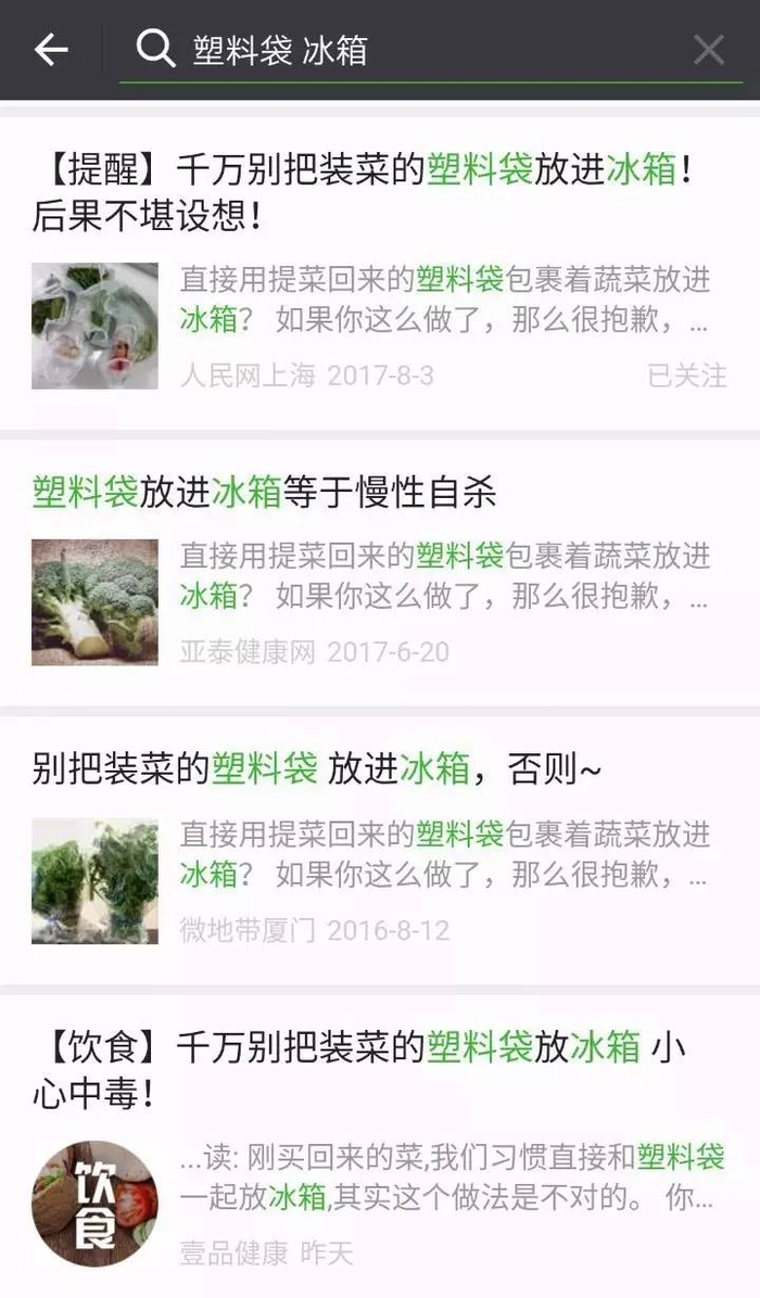 近日,题为“千万别把装菜的塑料袋放进冰箱!”的文章被多个微信公号疯转。文章称塑料袋的增塑剂、着色剂等会迁移到蔬菜里,危害人体健康。