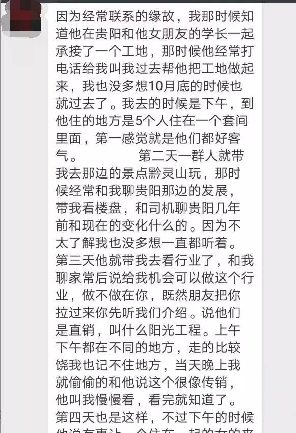 张文说,以前在网上看到过传销的“套路”,没想到自己身边的同学就真实经历了,这几位‘陷’入传销的同学都来自普通家庭,都是20岁出头的年纪,进入传销还要投入六七万,“他们向亲人、同学借过钱。”张文说,看到他们耗费数年的青春时光在这样浑噩的组织中,实在不忍心看着他们继续被骗下去……
