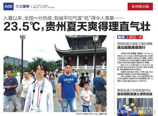 再看看今天(8月10日)见报的贵州都市报A6版头条:23 .5℃,贵州夏天爽得理直气壮