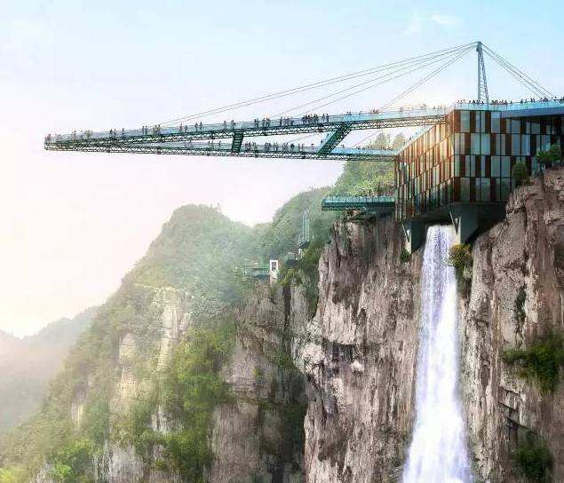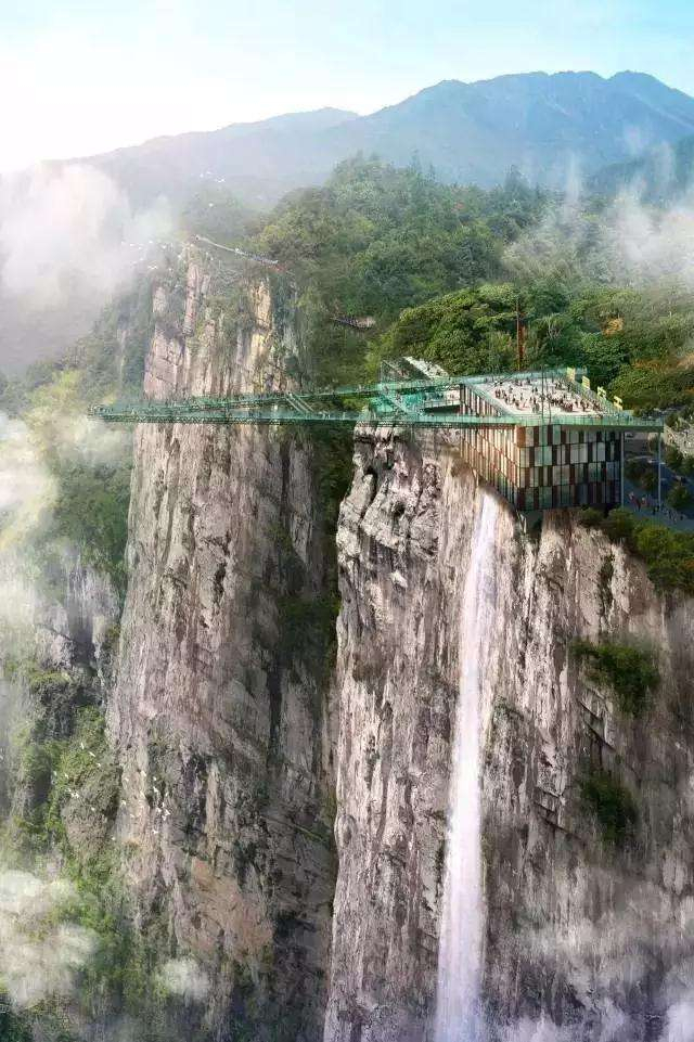 走在上面,让人有一种被推出去的感觉。刺激之余,还能体验美丽崖景和瀑布飞流直下的震撼场景!