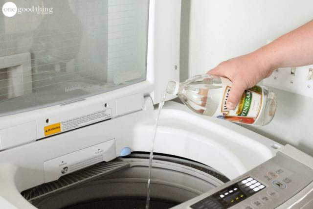 波轮洗衣机的清洗相对耗时一些,先在洗衣机中加入小半瓶白醋,在添加洗涤剂的小口也倒一些。