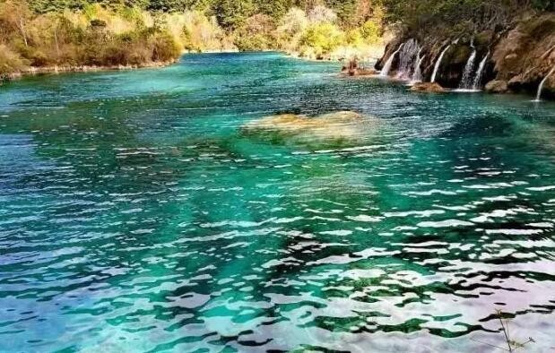 火花海又称火花池,海拔2187米,深9米,位于四川阿坝州九寨沟双龙海与卧龙海之间,湛蓝色的水面上波平如镜。海子的四周是茂密的树林,湖水掩映在重重的翠绿之中,像是一块晶莹剔透的翡翠。每当晨雾初散,晨曦初昭时,湖面会因为阳光的折射的作用,水面似有朵朵火花燃烧,星星点点,跳跃闪动。因而得名火花海。九寨沟像“Y”,而火花海是下面的一竖的上半部分。
