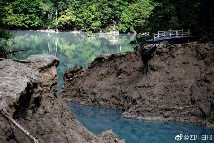 由于受到九寨沟地震影响,九寨沟景区内火花海受损严重,海子周边山体有垮塌,原来在阳光下闪烁的火花海水体严重流失,并裸露出海底泥土和树根枯木。不过幸运的是,目前荷叶寨村民570余人没有伤亡。