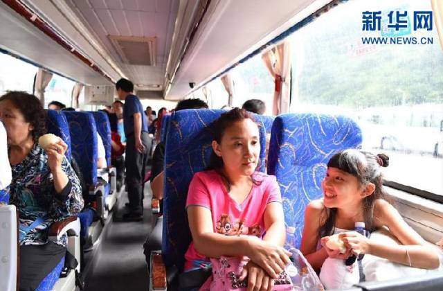 ▲因地震从九寨沟撤出的旅客在平武汽车客运站转乘客运大巴返回成都、绵阳等地。