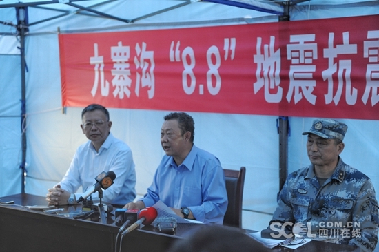 8月10日下午5点,九寨沟“8.8”地震抗震救灾指挥部召开第二场新闻发布会,省委常委、农工委主任、抗震救灾指挥部副指挥长曲木史哈发布相关新闻。省政府新闻办主任房方主持发布会。