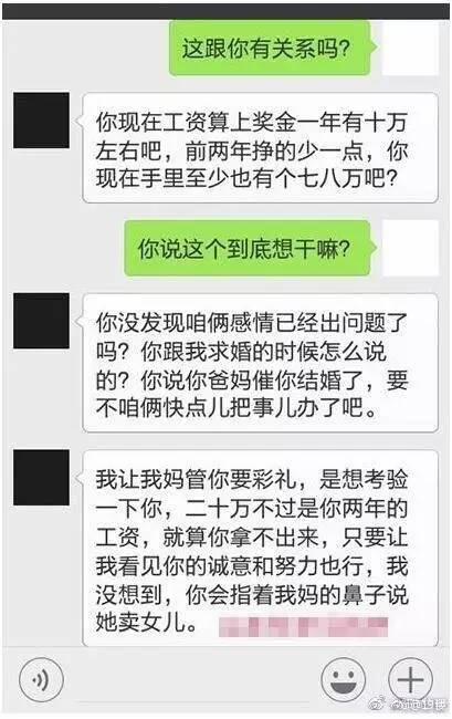 @黑眼圈不会吐烟圈:钱多少其实不是最重要,人家是看你一个态度,一听20万彩礼就分手,这样的男人真的也不见得多爱女朋友。