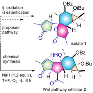 以上研究成果以Natural and Semisynthetic Tigliane Diterpenoids with New Carbon Skeletons from Euphorbia dracunculoides as a Wnt Signaling Pathway Inhibitor 为题发表于Organic Letters (2017, 19, 3911)。