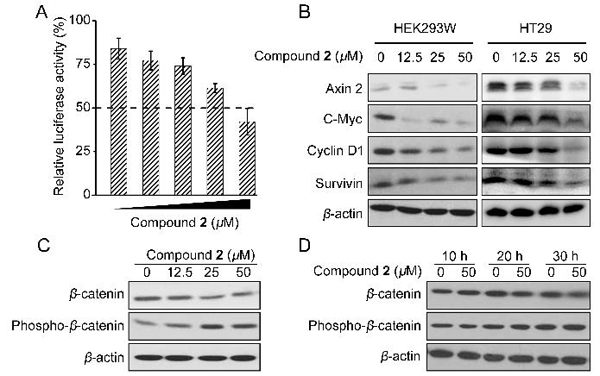 图3. 新骨架化合物2的Wnt通路抑制活性